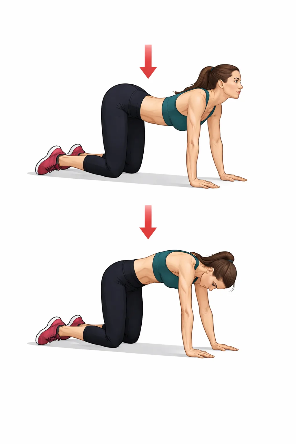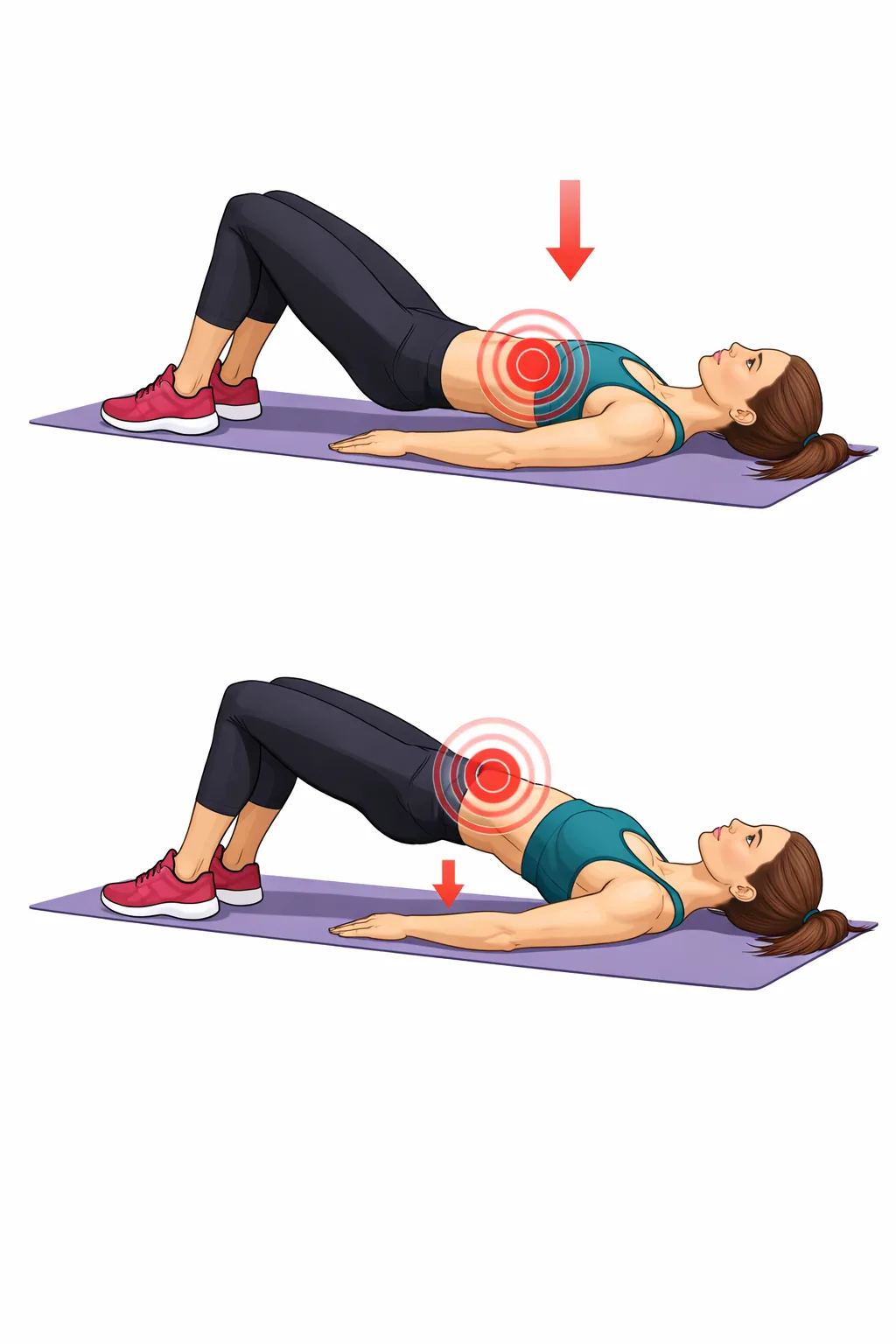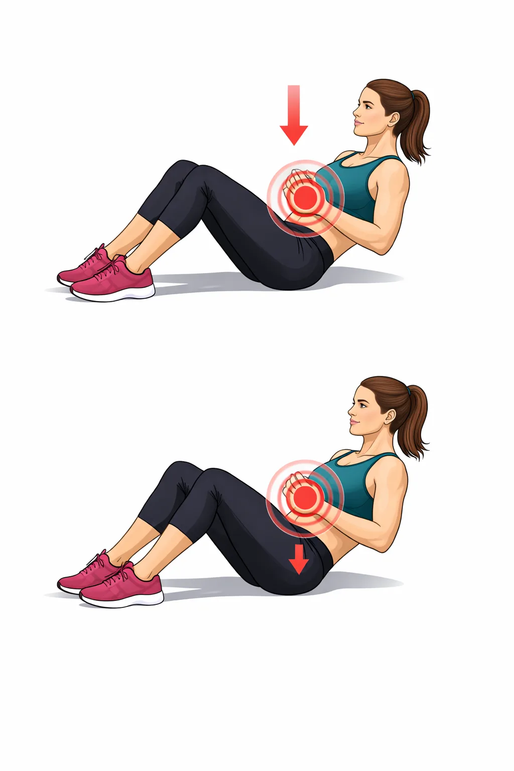- В верхней точке задержись на 2–3 секунды. Ты должна чувствовать чёткое напряжение снизу.